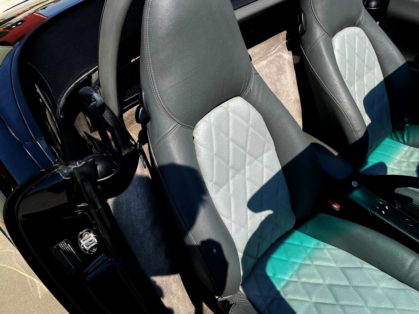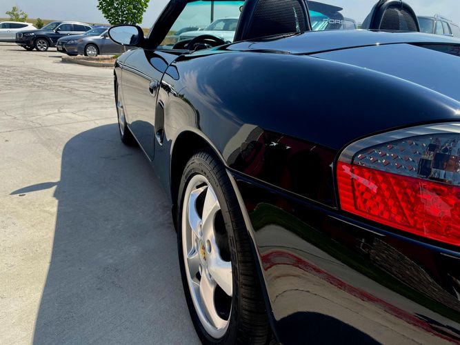Clean Carfax! Black exterior Paint, Graphite Gray Partial Leather Interior, Sport PKG, Heated Front Seats, 17" Boxster Wheels, Wheel Caps with Colored Porsche Crest