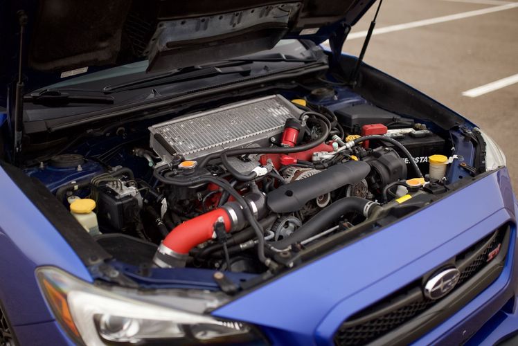 Modifications to this STI include: a cat-back exhaust, cold air intake, and upgraded blow-off valve