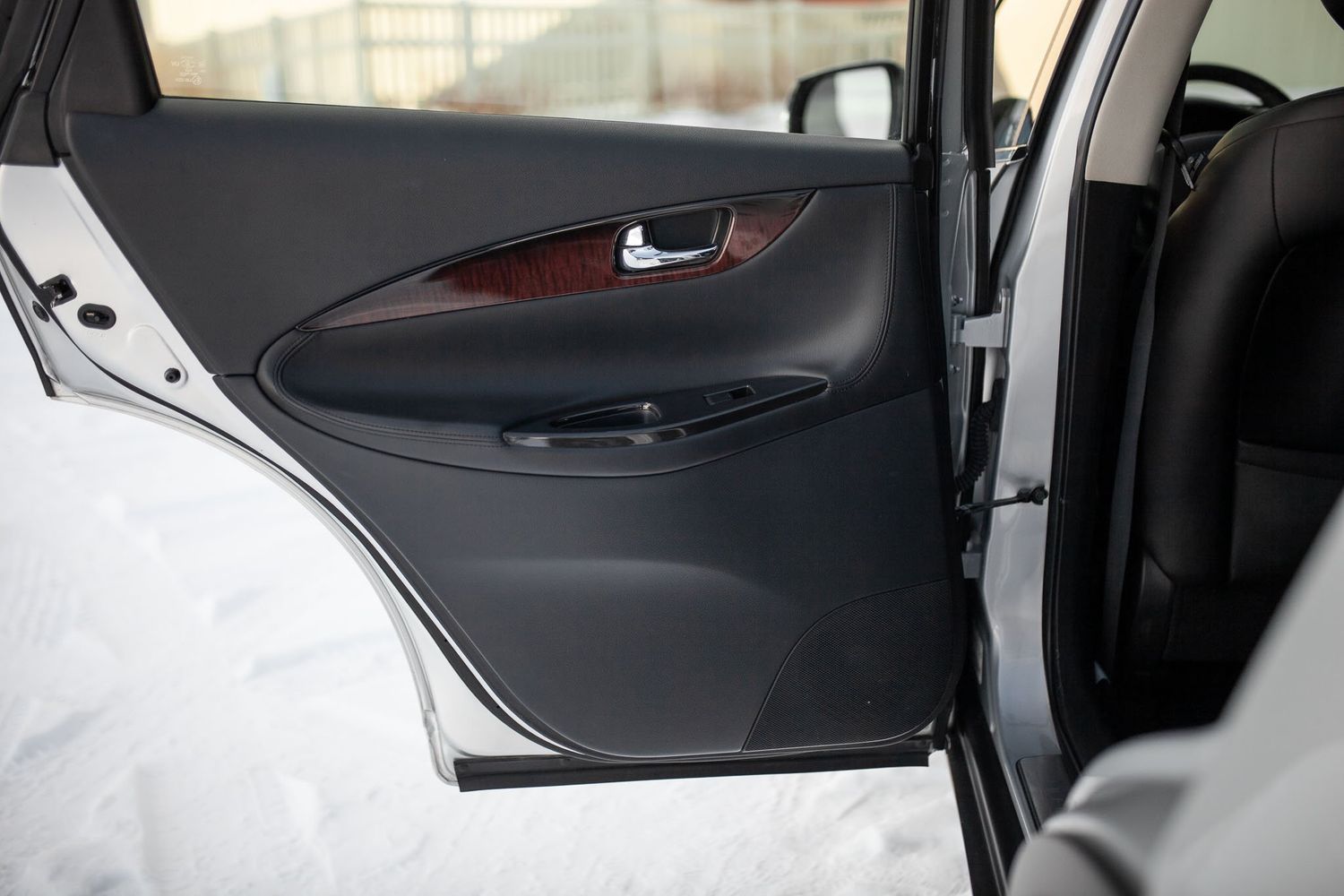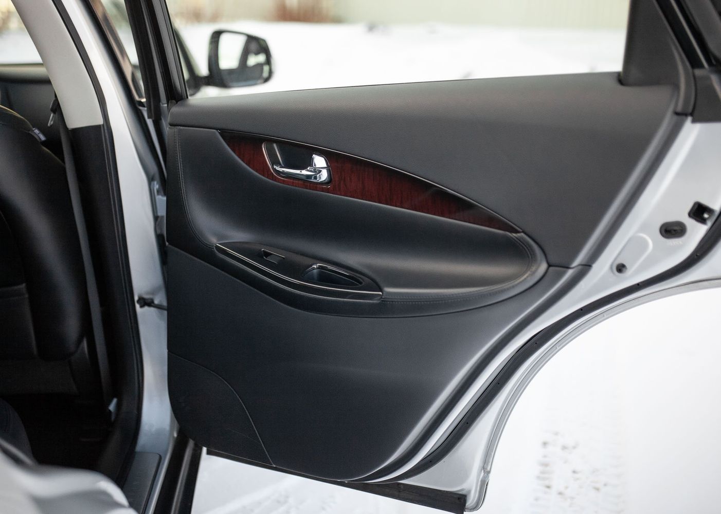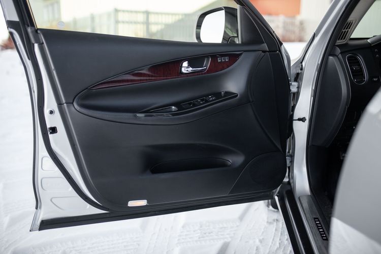 This SUV is equipped with: Black Leather Seats, Splash Guards, A Rear Bumper Protector, Illuminated Kick Plates, Infiniti's Premium and Premium Plus Packages, A Bose Sound System, Power Adjustable Mirrors, a Power Adjustable Steering Column, Roof Rails, Cruise Control, Power Adjustable Memory Seats, Fog Lights, and a Touchscreen Radio